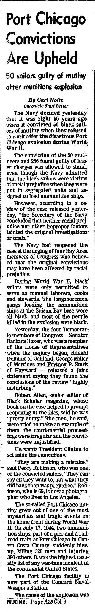 Port Chicago 50 still not exonerated, 1994 (Source) San Francisco Chronicles
